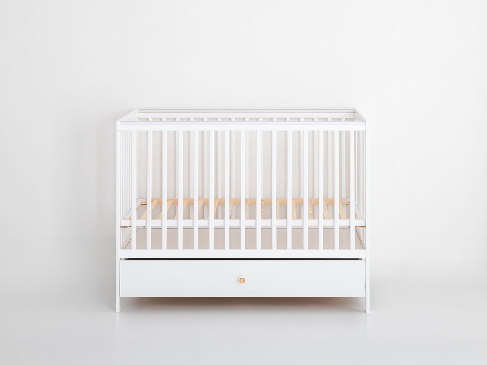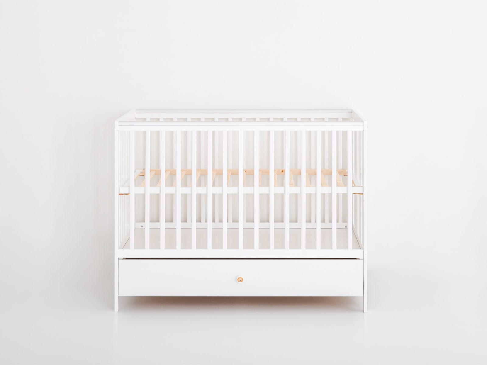 Het Dodo babybedje is voorzien van een driedelige verstelbare matrashoogte, waardoor het eenvoudig kan worden aangepast aan de leeftijd en behoeften van het kind. Het matrasframe kan worden ingesteld op een hoogte van 57 cm, 41 cm of 30 cm vanaf de vloer. Deze oplossing ondersteunt comfortabel dagelijks gebruik bij baby’s en zorgt voor extra veiligheid bij oudere, actievere kinderen.